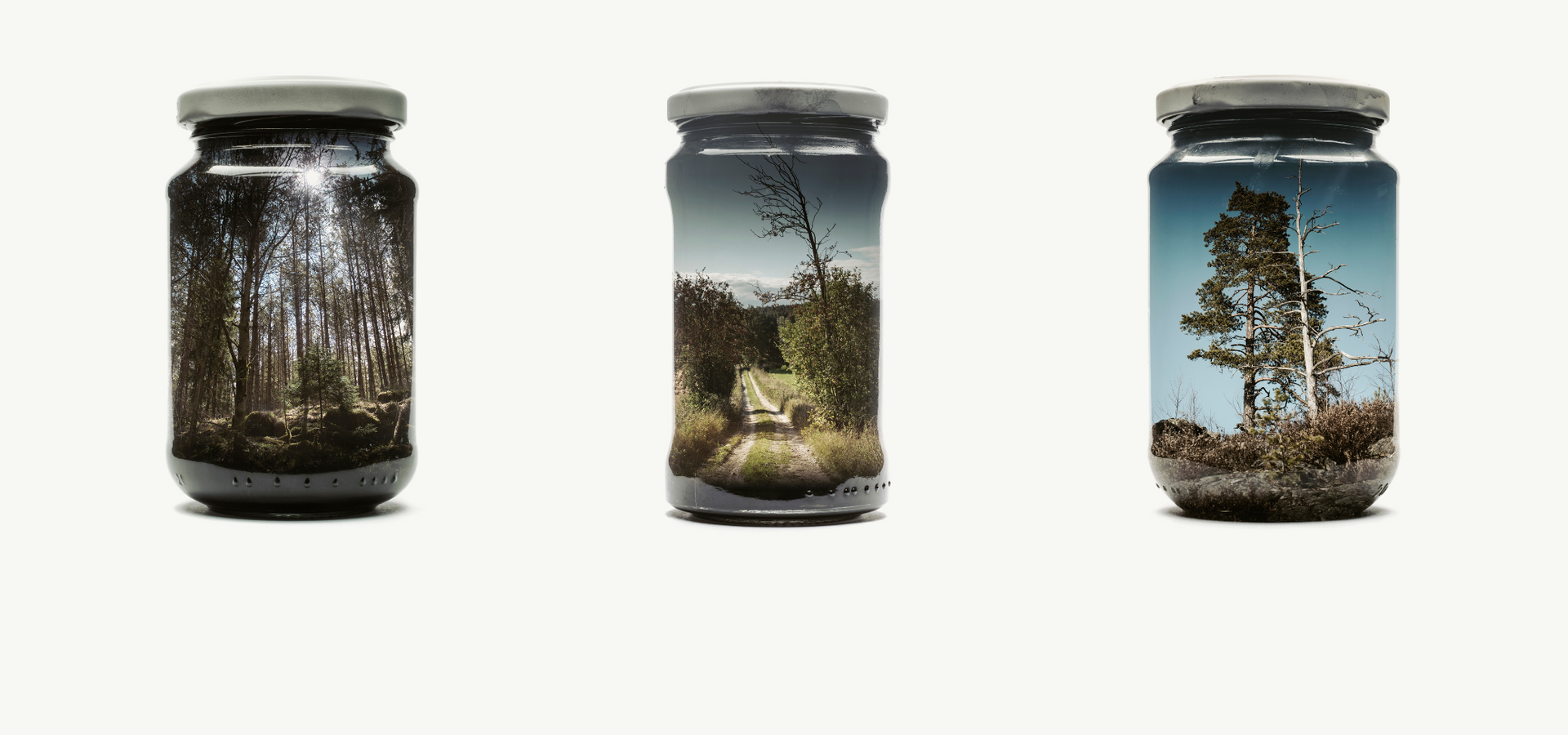 Made by Christoffer Relander, Jarred & Displaced sprang from a childish dream: I put my childhood landscapes in jars. Using in-camera multiple exposure, the playful process of catching these scenes became part of the art. Each jar preserves a piece of home and invites us to protect our environments.