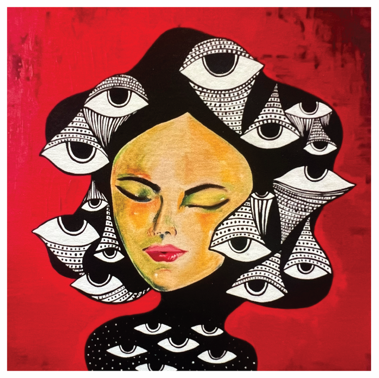 Shweta has always felt very passionately about using her unique brand of storytelling and art to spotlight on the evolving Indian woman’s journey. Through her acute design acumen and her evolved sense of aesthetic, Shweta bravely asks the big questions: will our culture and society stop employing gender-based stereotypes which restrict the progress and growth of women from both India and Bharat? She keenly follows the journey of Indian women breaking barriers both in urban as well as small-town India. And uses this conflict of sorts as a landscape in most of her paintings.