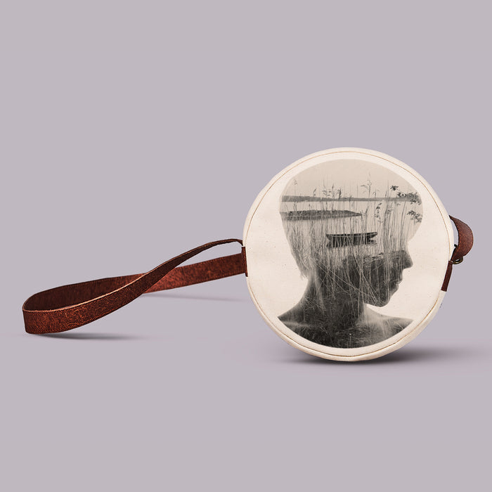 Pulse is presence you hold onto. A round 8-inch purse in 100% cotton canvas with cotton lining, finished with coconut-based leather trim and strap. One pocket to hold close, one to keep at hand. Compact expression, designed to be felt.