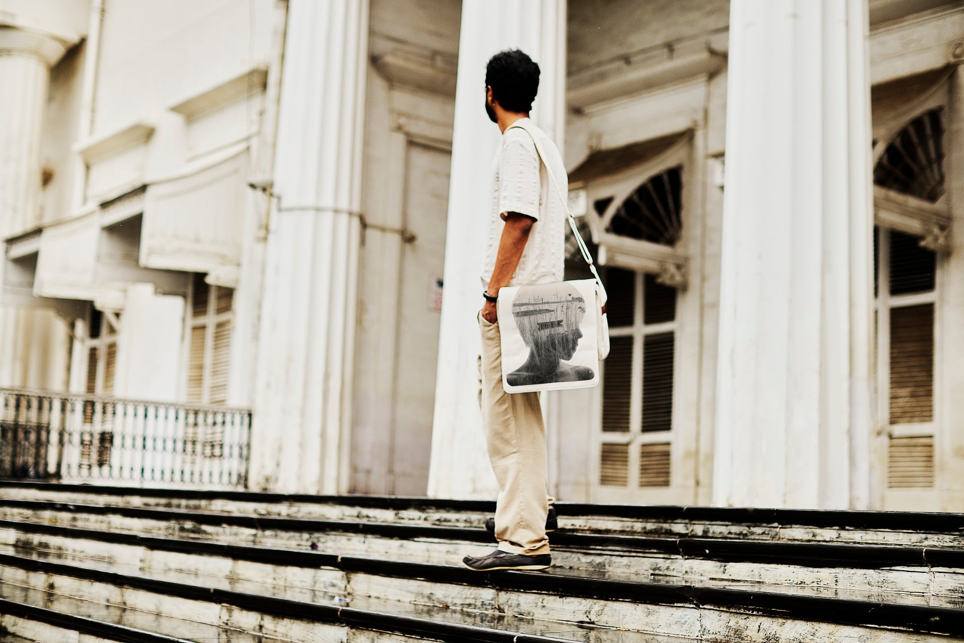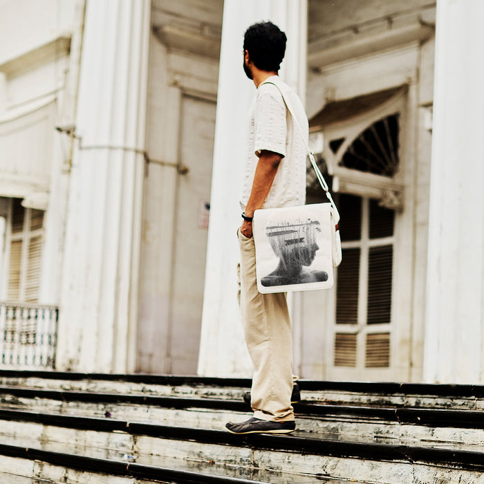 Scrol folds like a message and carries like intent. A satchel made from 100% cotton canvas with coconut-based leather trim. Two main compartments, with a zipped pocket inside, keep order, while adjustable straps add range and ease. Sized to hold up to a 13-inch laptop. Distinct, deliberate, never background.