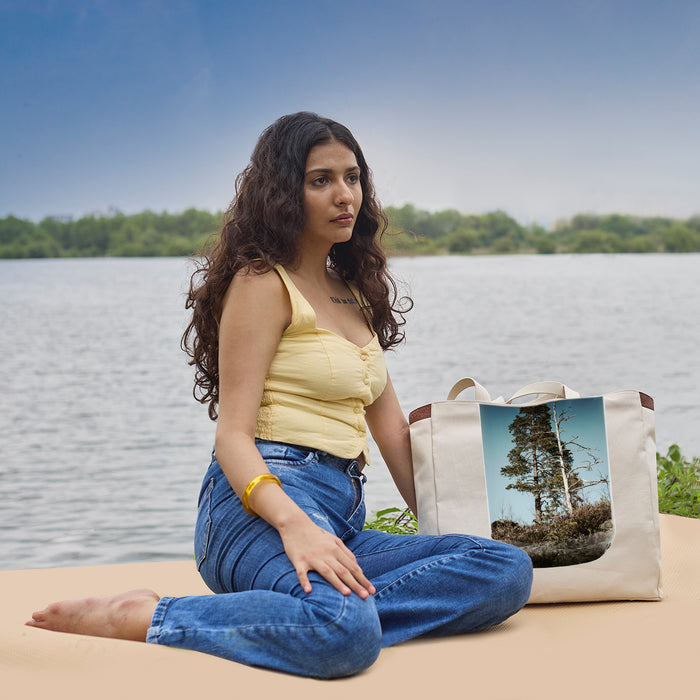 Drift carries more than things. It carries your day. A large tote in 100% cotton canvas with coconut-based leather trim and cotton fabric lining. The main compartment secures with a magnet lock; inside, a zipped section keeps order with two open pockets stitched onto it. Structured yet fluid, Drift contains your chaos with intent.