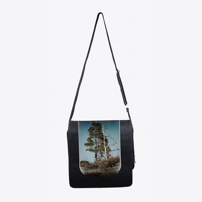A satchel made from 100% cotton canvas with coconut-based leather trim. Two main compartments, with a zipped pocket inside, keep order, while adjustable straps add range and ease. Sized to hold up to a 13-inch laptop. Distinct, deliberate, never background.