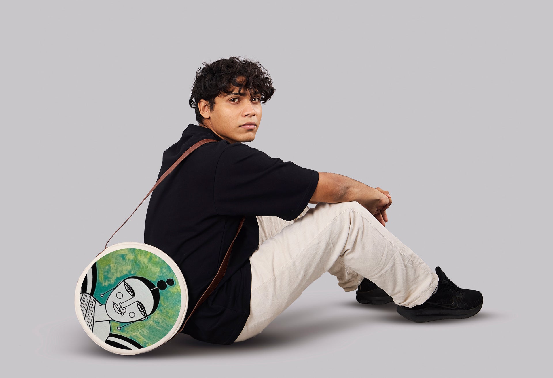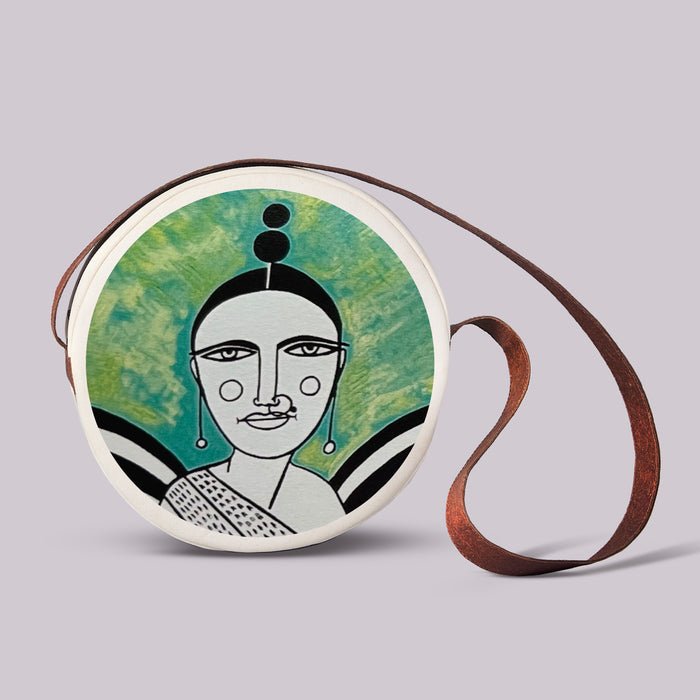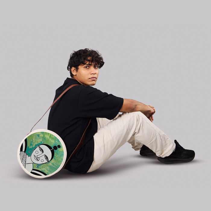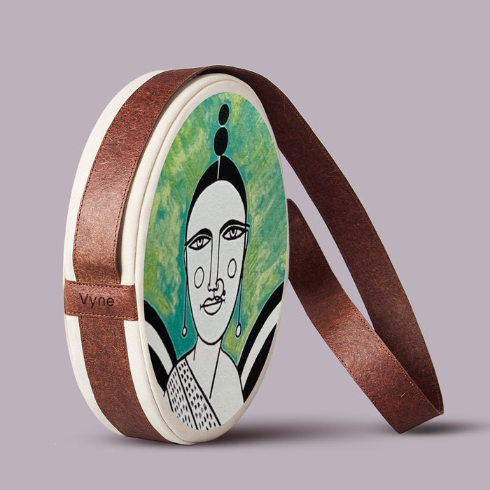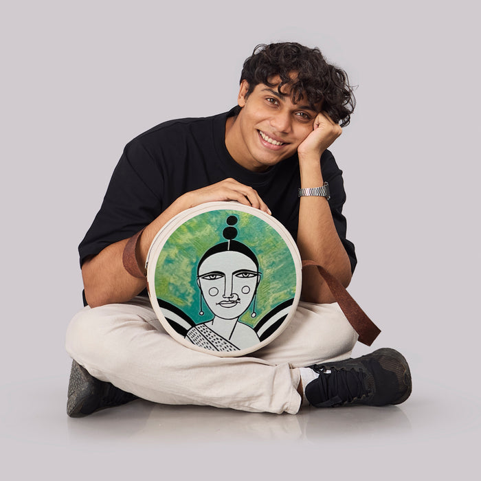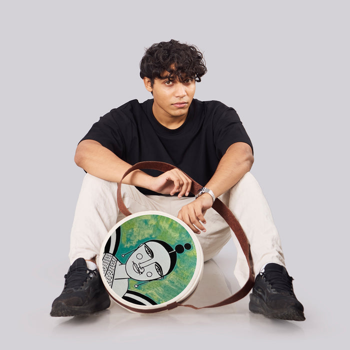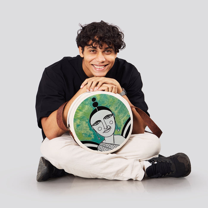 12-inch diameter in 100% cotton canvas, finished with coconut-based leather trim and handle, and eco-friendly brass zippers. Inside, a zipped pocket keeps order; outside, an open pocket keeps essentials within reach. Built for clarity, built for flow.