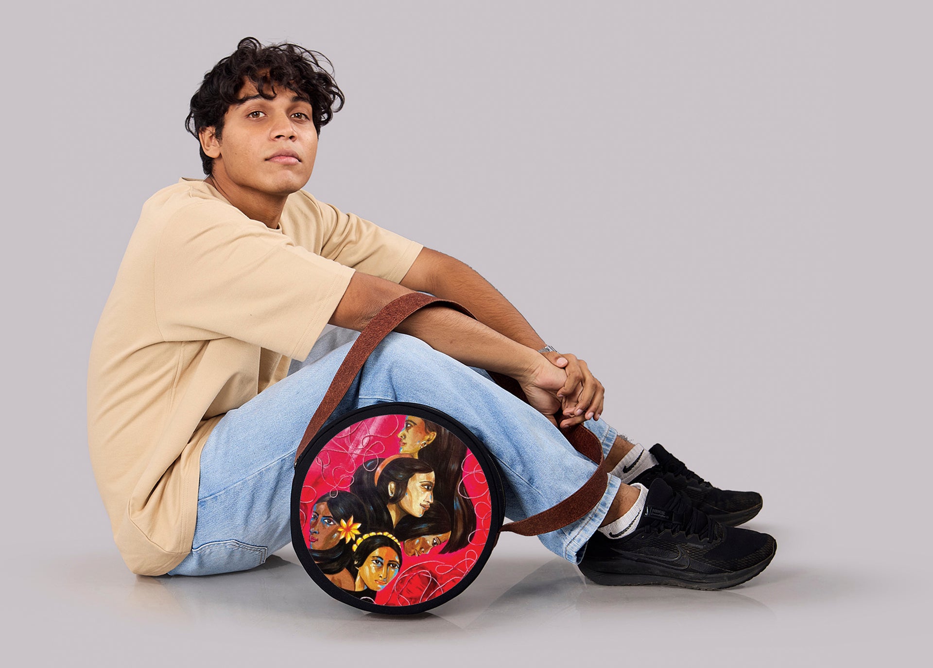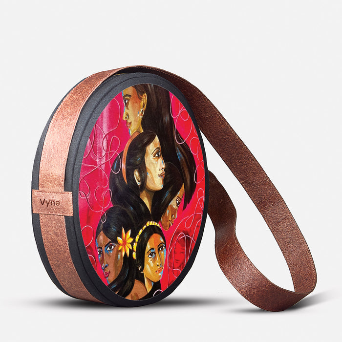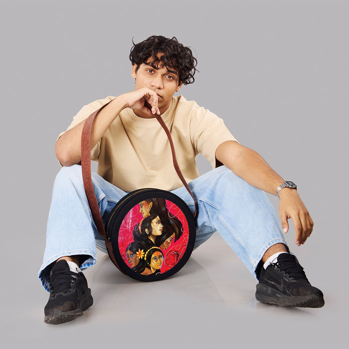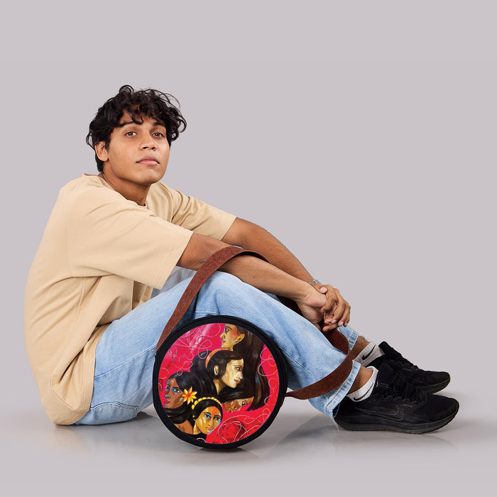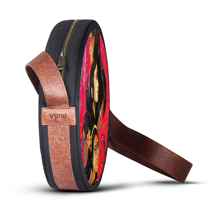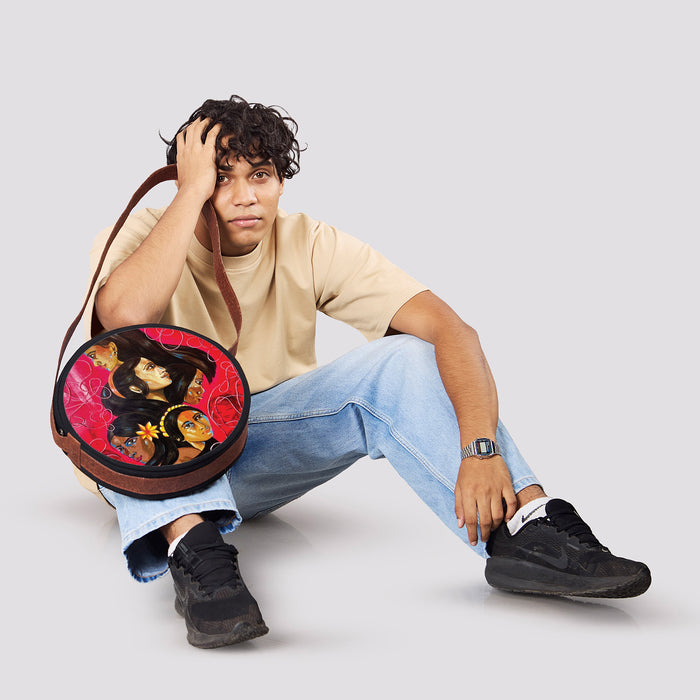 12-inch diameter in 100% cotton canvas, finished with coconut-based leather trim and handle, and eco-friendly brass zippers. Inside, a zipped pocket keeps order; outside, an open pocket keeps essentials within reach. Built for clarity, built for flow.