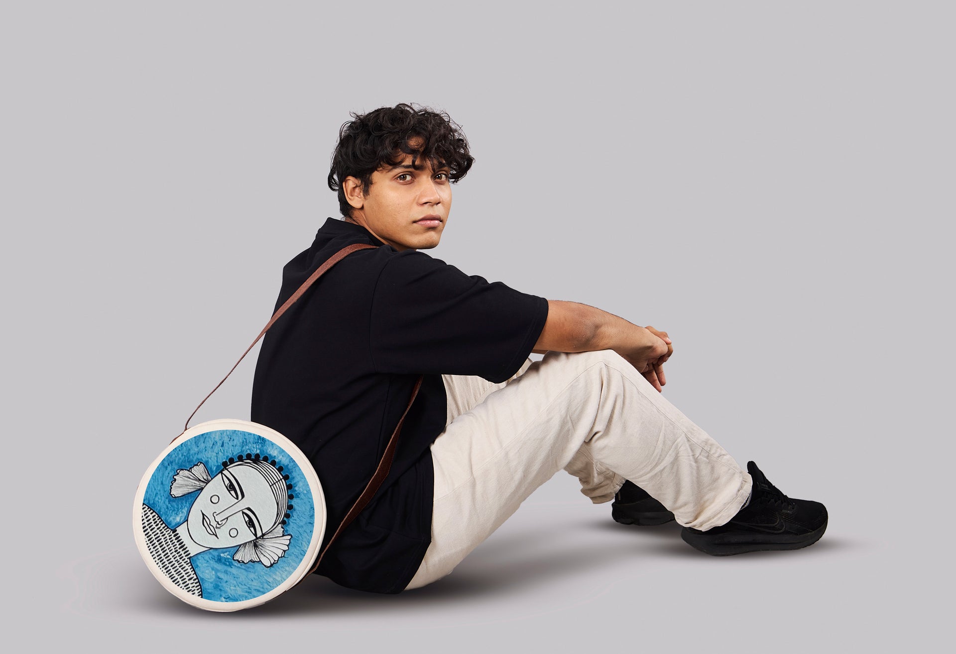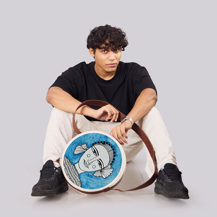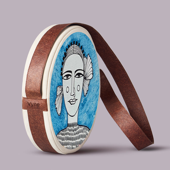 Halo is steady, spacious, and quietly bold. 12-inch diameter in 100% cotton canvas, finished with coconut-based leather trim and handle, and eco-friendly brass zippers. Inside, a zipped pocket keeps order; outside, an open pocket keeps essentials within reach. Built for clarity, built for flow.