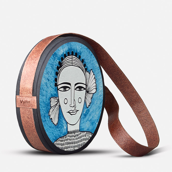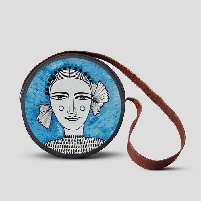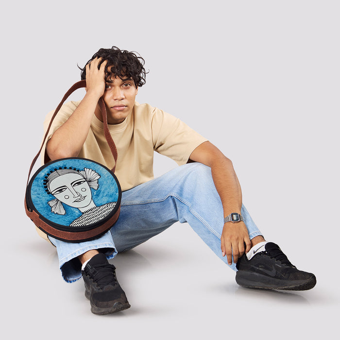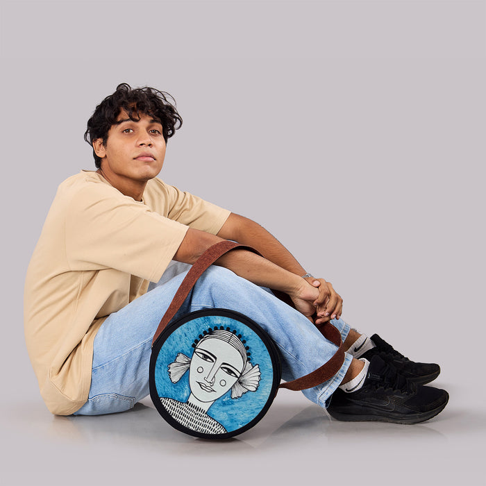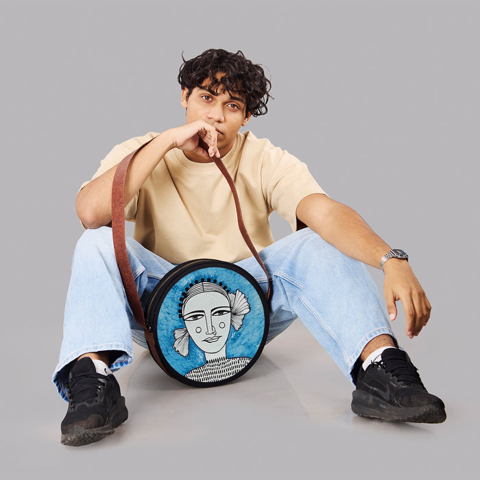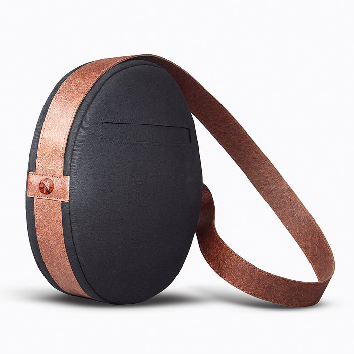 12-inch diameter in 100% cotton canvas, finished with coconut-based leather trim and handle, and eco-friendly brass zippers. Inside, a zipped pocket keeps order; outside, an open pocket keeps essentials within reach. Built for clarity, built for flow.