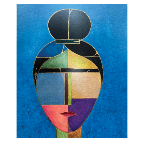 "Inspired by Kintsugi, where broken things are sealed with gold, she embraces the cracks that scar her reality. Made of broken dreams and dashed hopes, yet bound by resilience, she is forever evolving. Her beauty lies not beyond her flaws but within them. She is perfect in her imperfection"