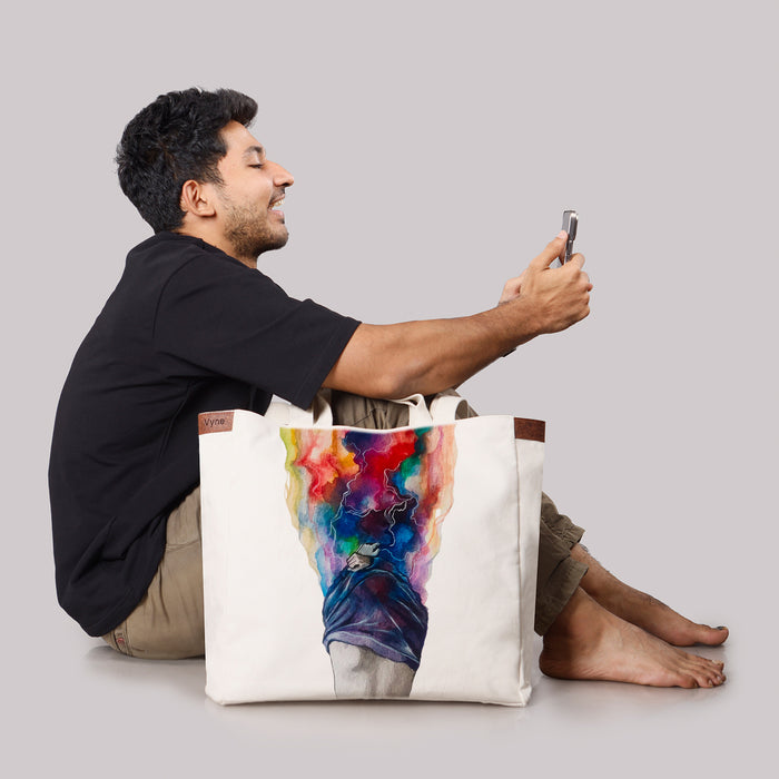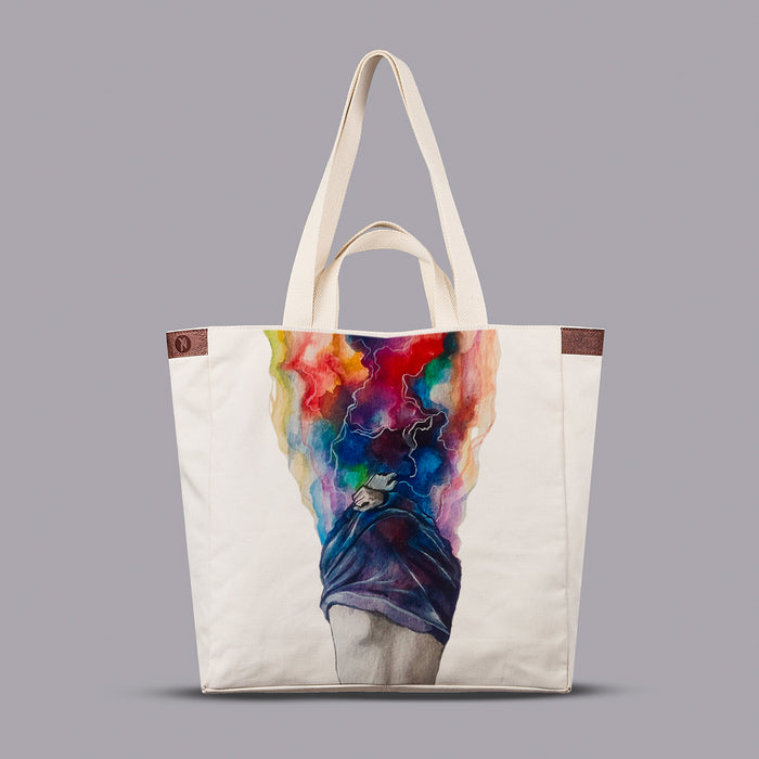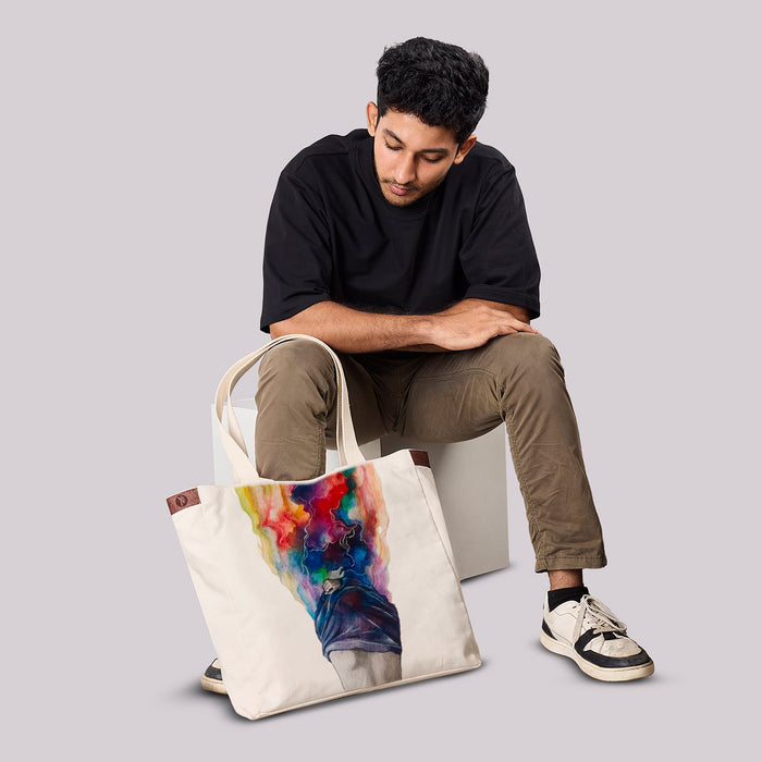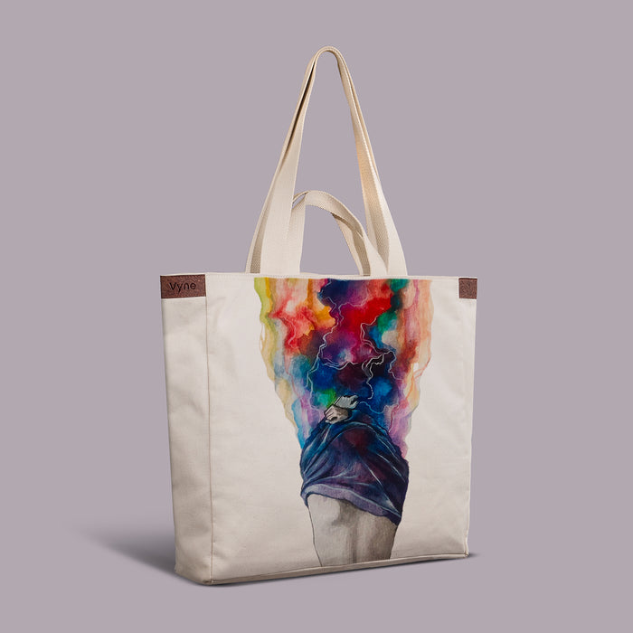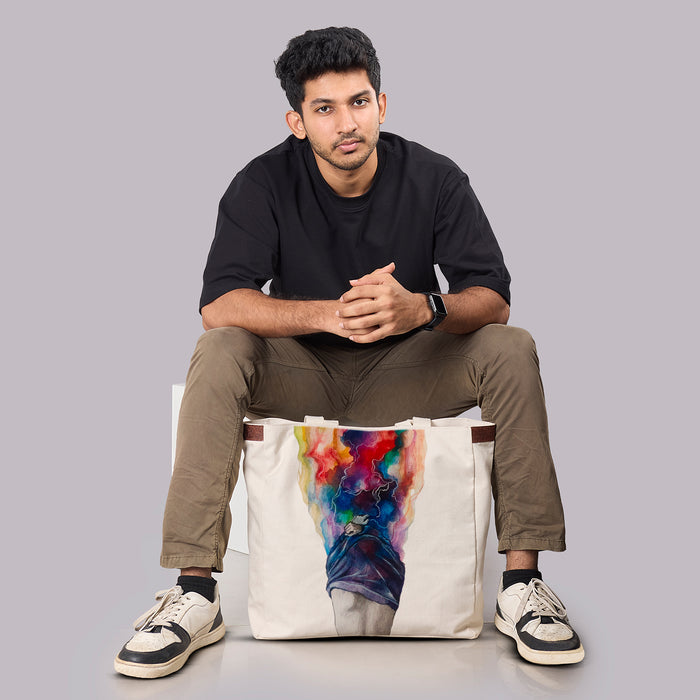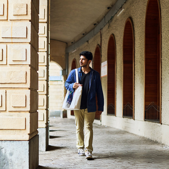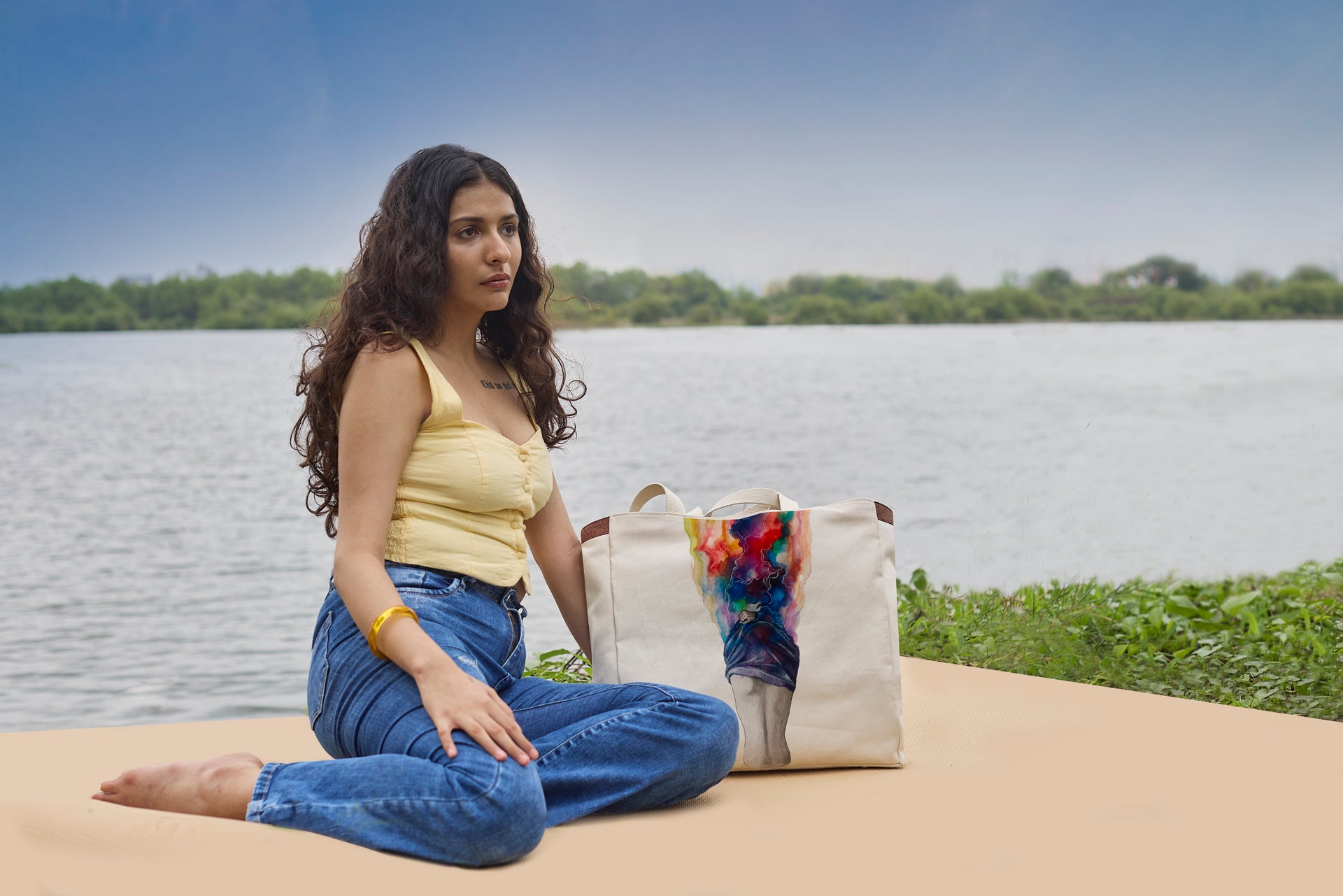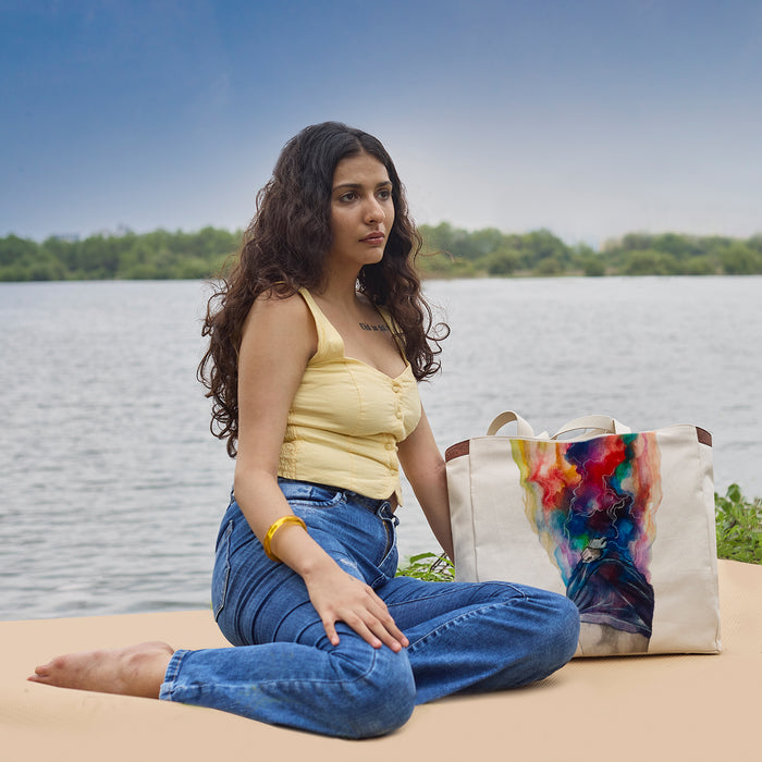Drift carries more than things. It carries your day. A large tote in 100% cotton canvas with coconut-based leather trim and cotton fabric lining. The main compartment secures with a magnet lock; inside, a zipped section keeps order with two open pockets stitched onto it. Structured yet fluid, Drift contains your chaos with intent.