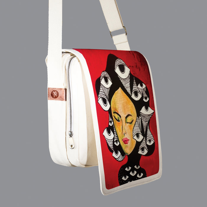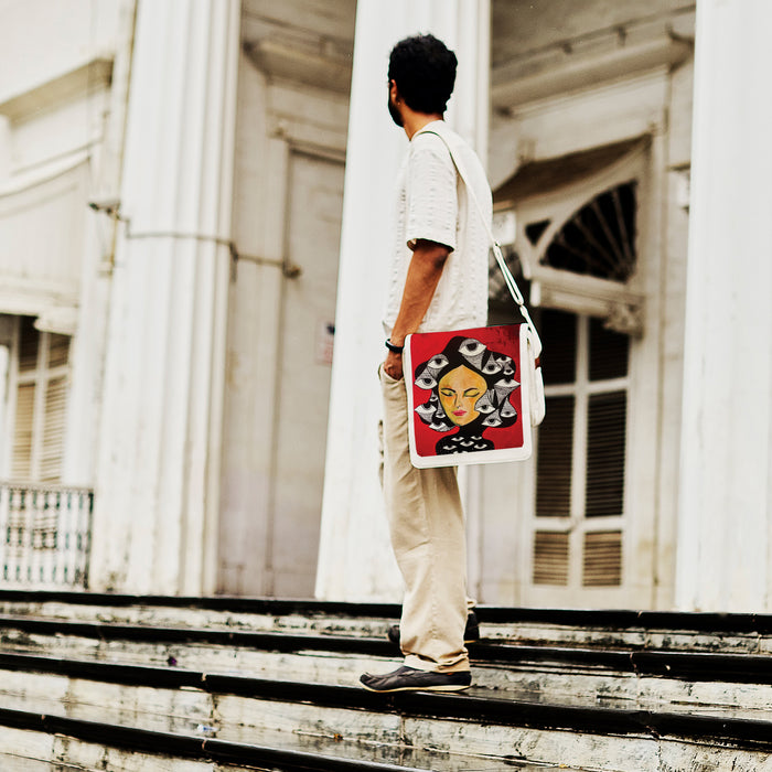 Scrol folds like a message and carries like intent. A satchel made from 100% cotton canvas with coconut-based leather trim. Two main compartments, with a zipped pocket inside, keep order, while adjustable straps add range and ease. Sized to hold up to a 13-inch laptop. Distinct, deliberate, never background.