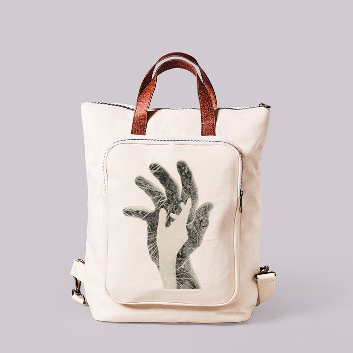 Havn is your grounded carry. Steady, functional, built with intent. A large backpack in 100% cotton canvas with coconut-based leather trim and handle. Fits a 15-inch laptop in its padded section, with an extra zipped pocket for order. A zipped exterior pocket keeps essentials close, while a magnet-locked cover at the back conceals the straps. Strong, structured, ready to move with you.
