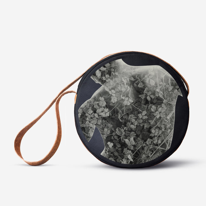 15-inch diameter in 100% cotton canvas, finished with coconut-based leather trim and handle. Inside, a zipped pocket keeps order; outside, an open pocket keeps what you need within reach. Built to be seen, built to move.