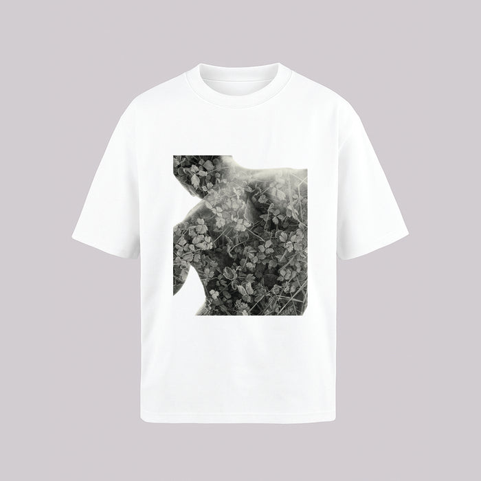 Frosted Back overlays frost on a human back. This digital composite made with external software gave me control over texture. It hints at our fragility in cold ecosystems and our need to respect nature’s cycles.