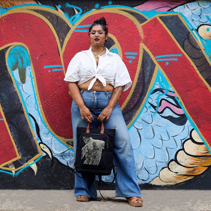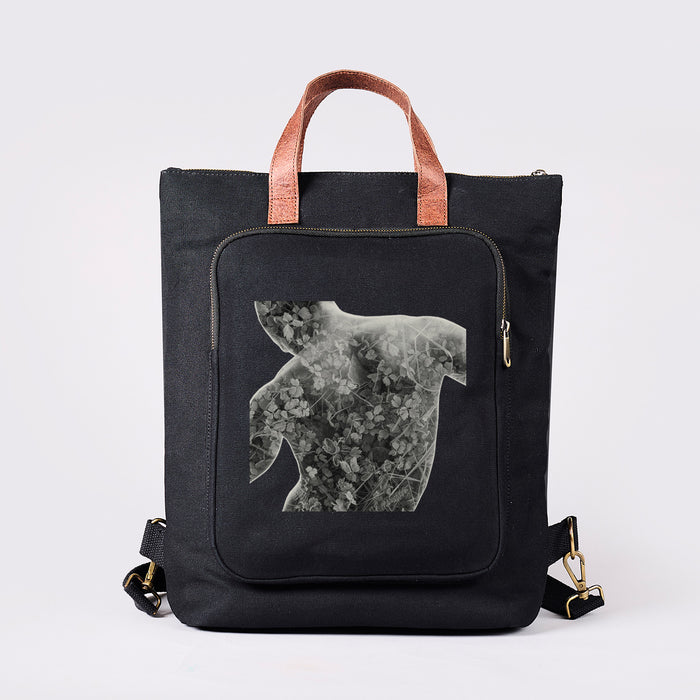 Frosted?Back overlays frost on a human back. This digital composite made with external software gave me control over texture. It hints at our fragility in cold ecosystems and our need to respect nature’s cycles.