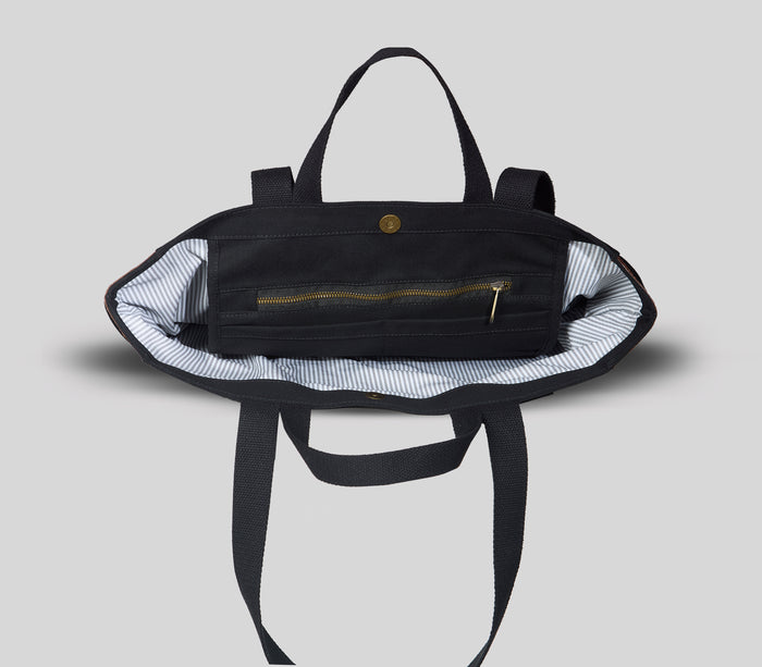Drift carries more than things. It carries your day. A large tote in 100% cotton canvas with coconut-based leather trim and cotton fabric lining. The main compartment secures with a magnet lock; inside, a zipped section keeps order with two open pockets stitched onto it. Structured yet fluid, Drift contains your chaos with intent.