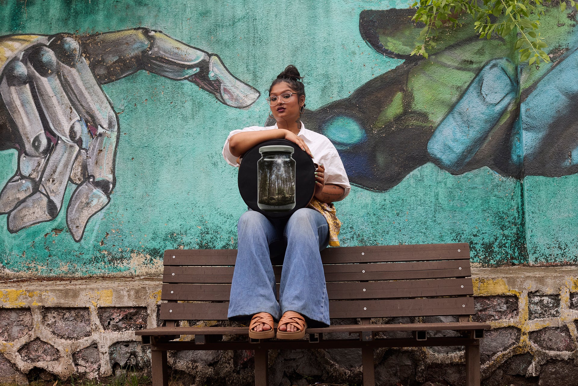 I wanted to compress an entire pine forest into a bottle. I photographed the jar and then overlaid a dense Finnish forest via in-camera double exposure. The mood is dark and introspective, as if you’re holding a private woodland.