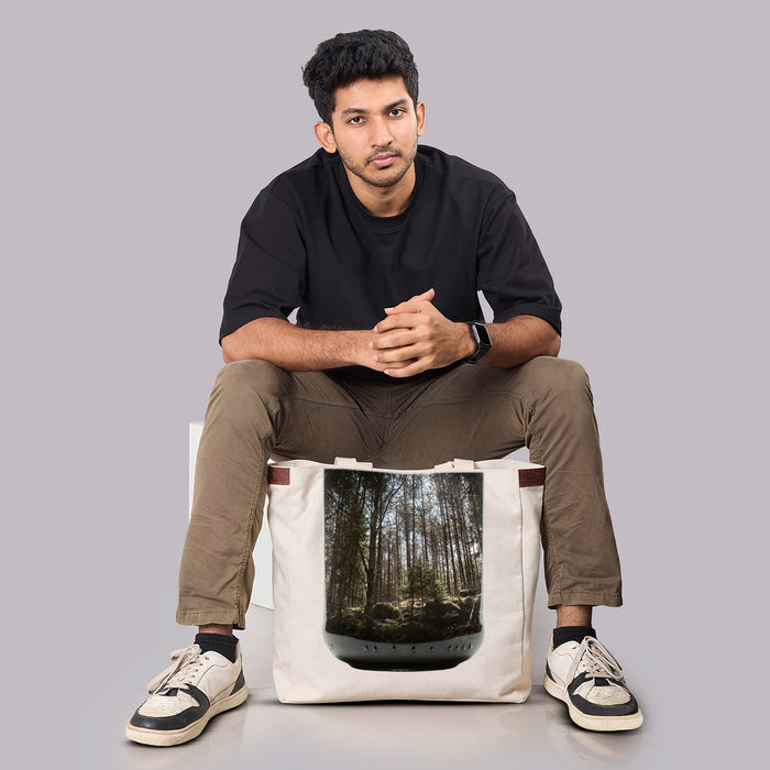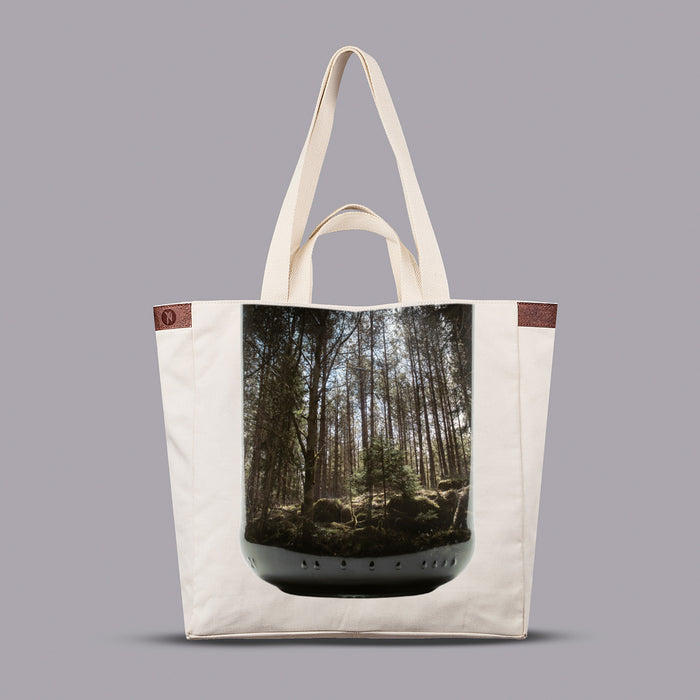 Drift carries more than things. It carries your day. A large tote in 100% cotton canvas with coconut-based leather trim and cotton fabric lining. The main compartment secures with a magnet lock; inside, a zipped section keeps order with two open pockets stitched onto it. Structured yet fluid, Drift contains your chaos with intent.