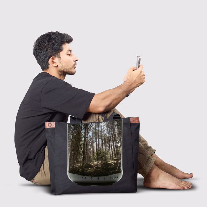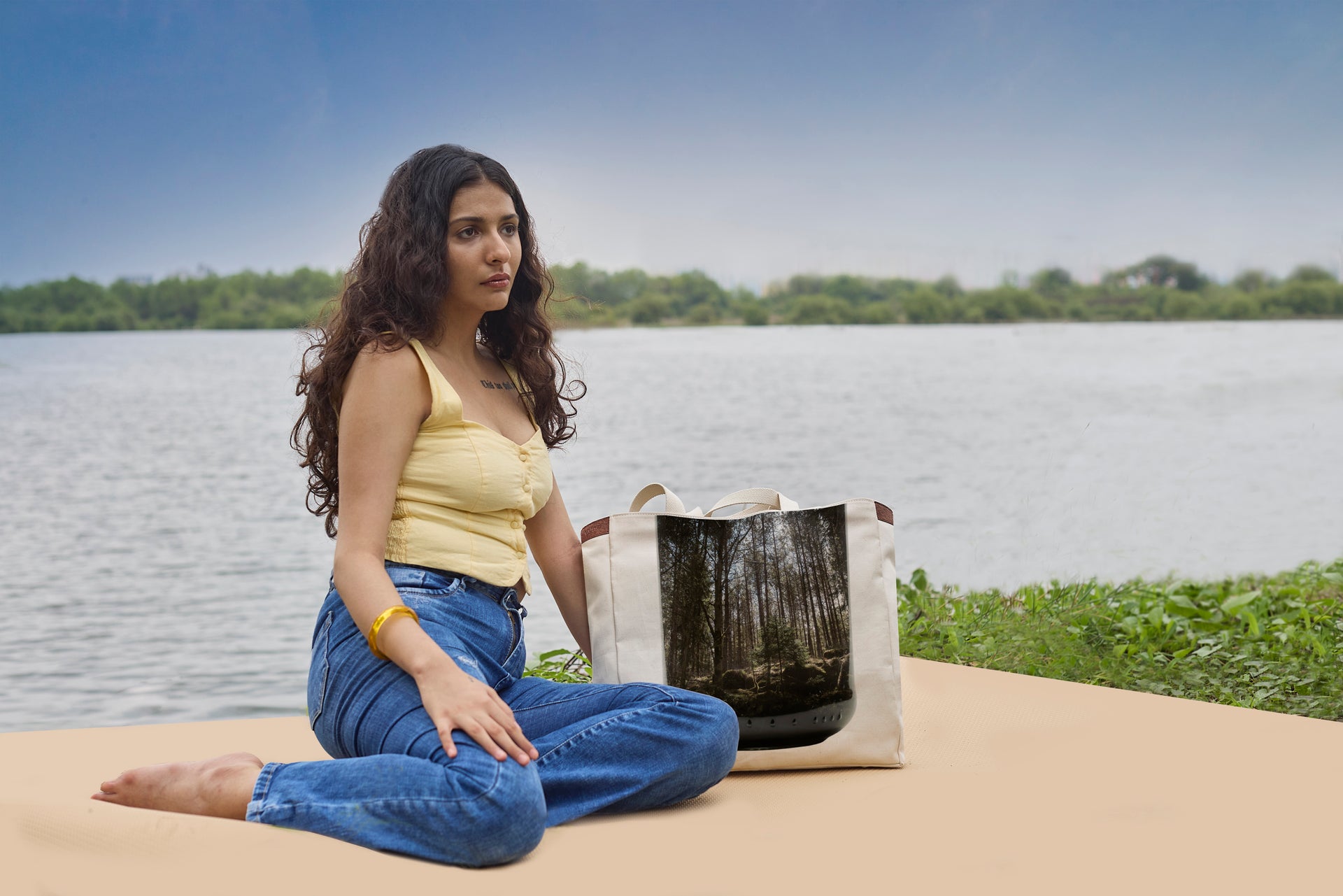 Drift carries more than things. It carries your day. A large tote in 100% cotton canvas with coconut-based leather trim and cotton fabric lining. The main compartment secures with a magnet lock; inside, a zipped section keeps order with two open pockets stitched onto it. Structured yet fluid, Drift contains your chaos with intent.