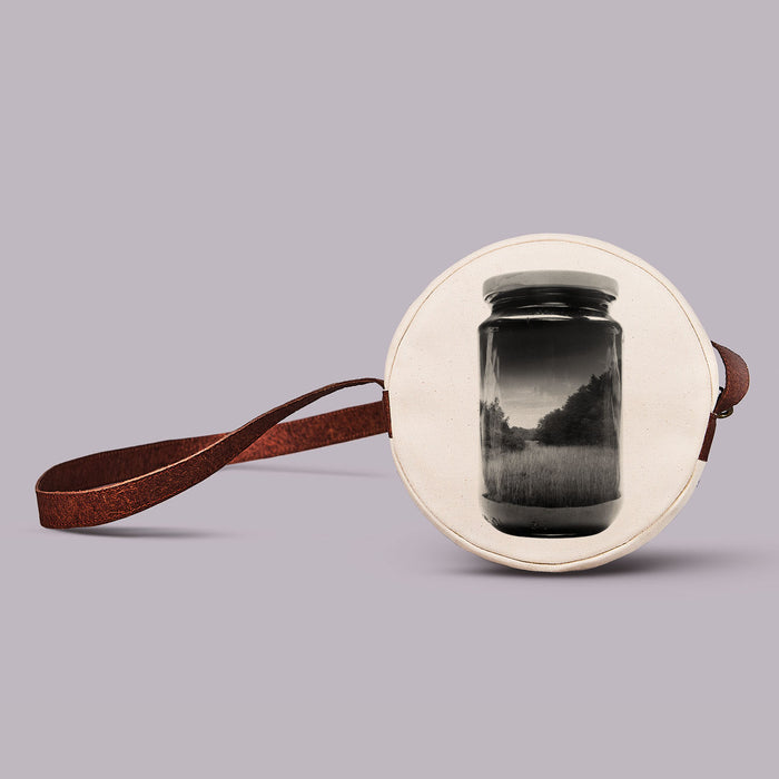 Pulse is presence you hold onto. A round 8-inch purse in 100% cotton canvas with cotton lining, finished with coconut-based leather trim and strap. One pocket to hold close, one to keep at hand. Compact expression, designed to be felt.