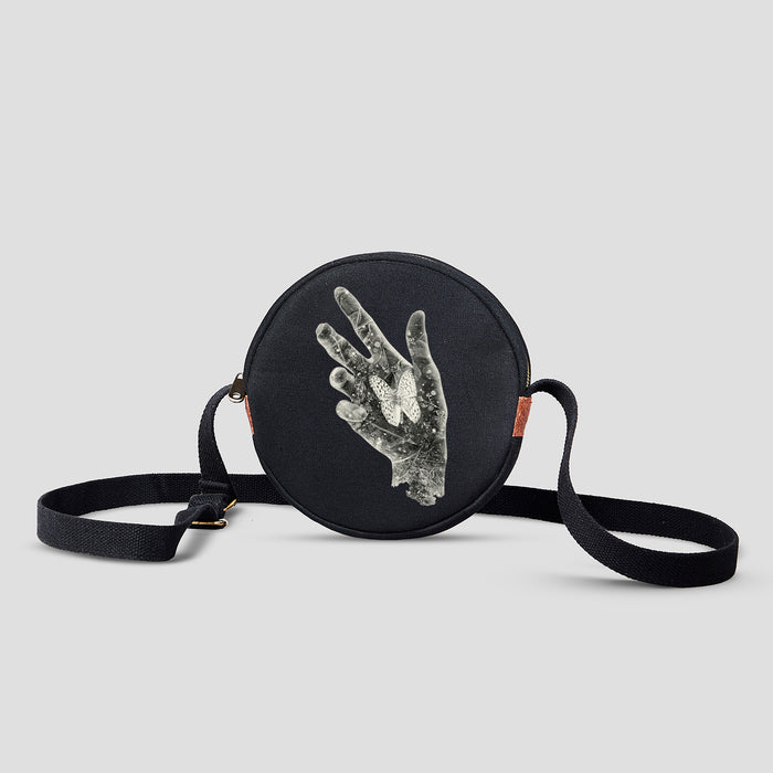 An 8-inch sling in 100% cotton canvas with cotton lining. Inside, a pocket for what matters; outside, one for what’s within reach. Carries only what counts.